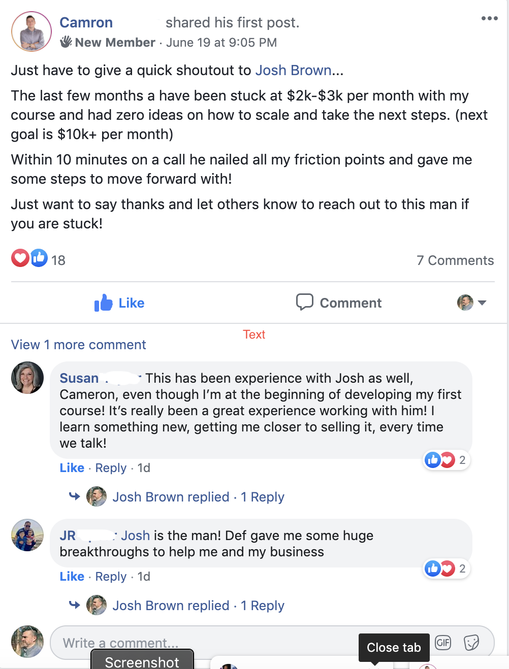 "Testimonials shown are real experiences from paying users. Their results are not typical and your experience will vary based upon your effort, education, business model, and market forces beyond our control. We make no earnings claims or return on investment claims, and you may not make your money back."